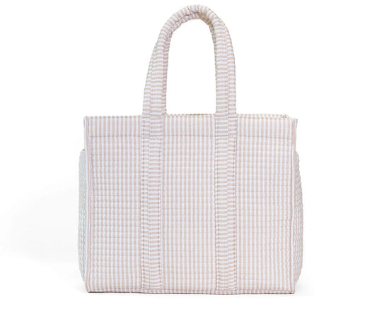 Quilted Go Go Tote Pink Stripe TRVL - instock