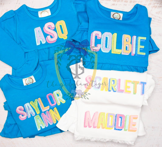 Girls Applique Name Tee - Brights