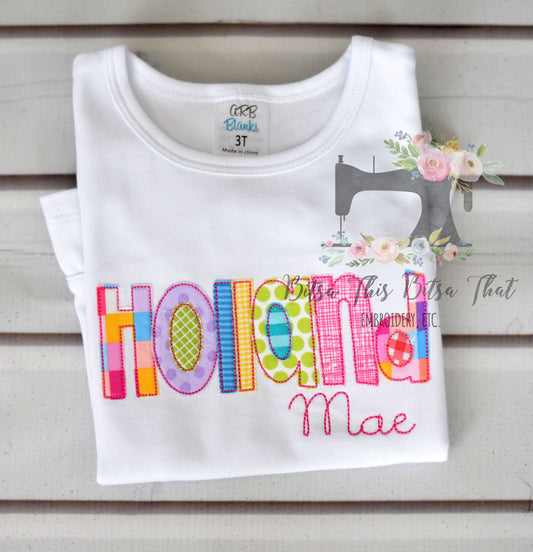 Girls Applique Name Tee - Brights