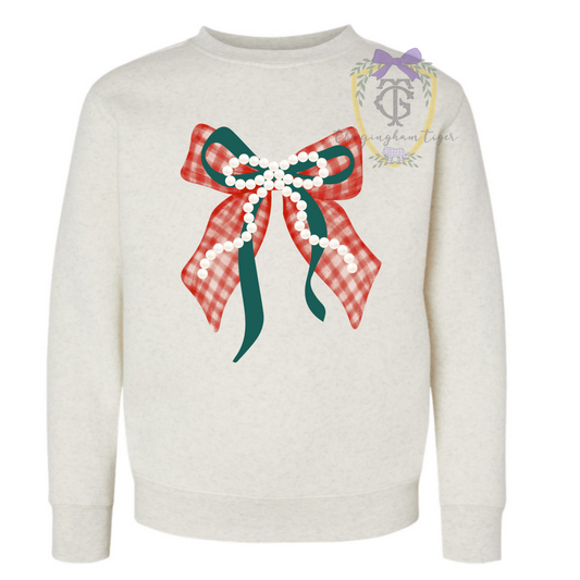 Christmas Pearl Bow Shirt or Sweatshirt (Infant-Youth)