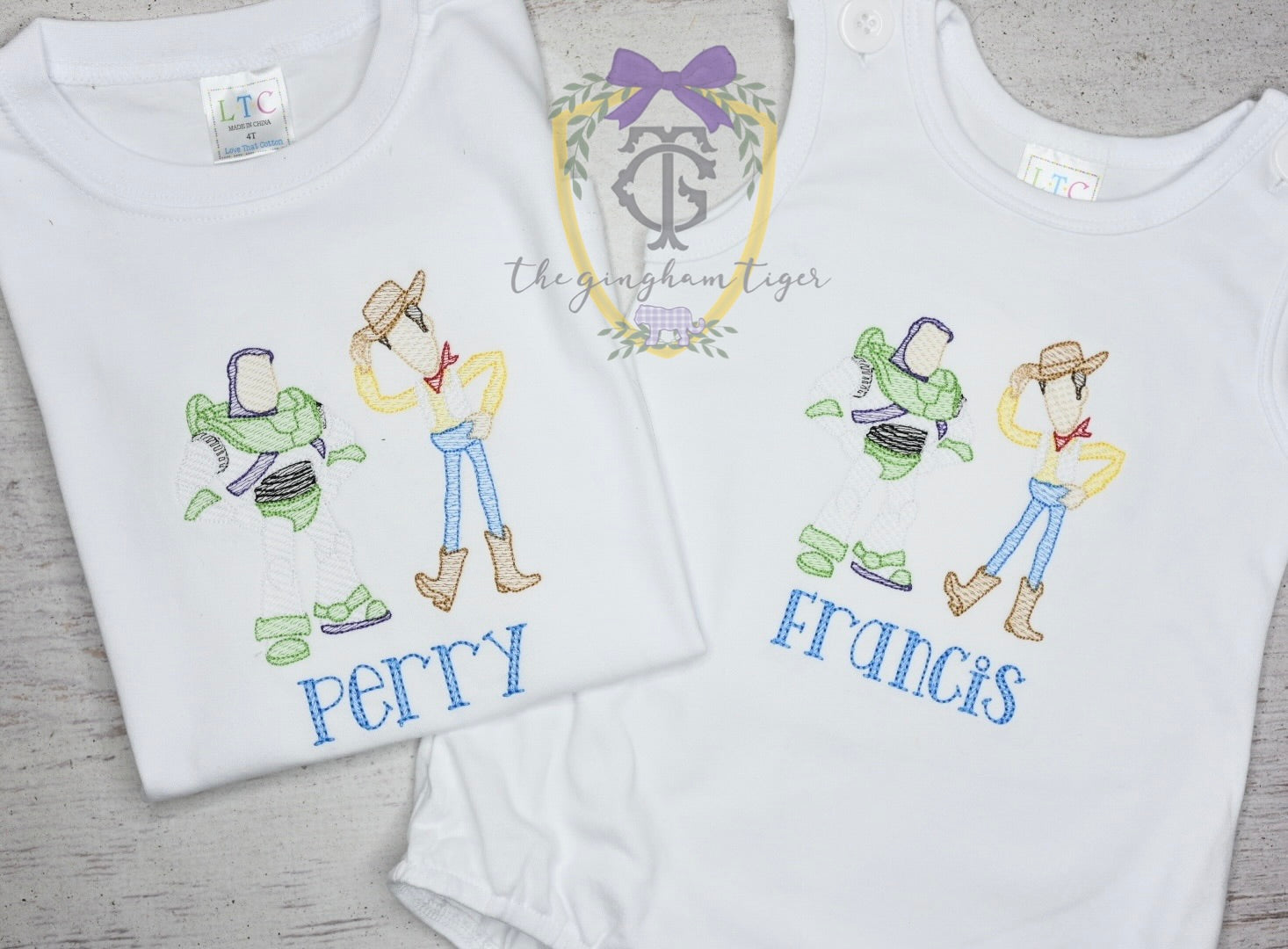 Best Friends Cowboy and Spaceman Embroidered Tee or Bubble